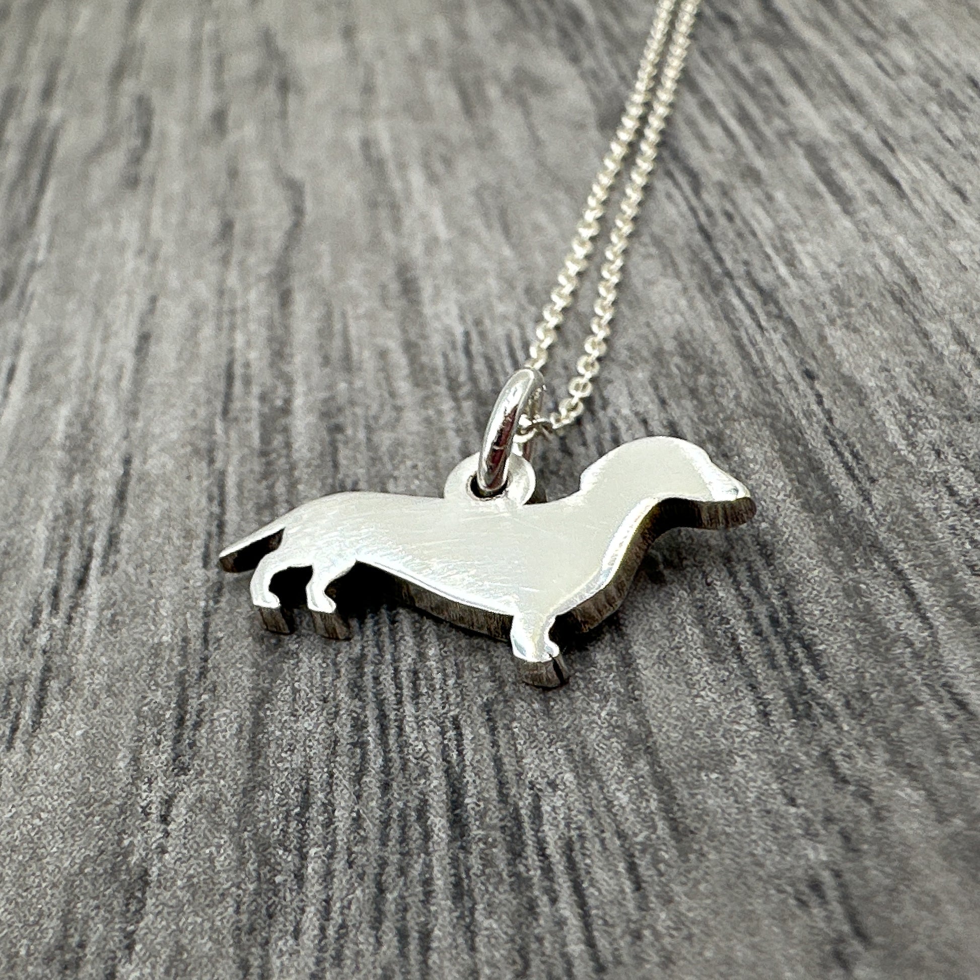 Tag & Tailor Dog Breed pendants are cut from 925 Sterling Silver with the option to engrave a name on the front. They are sanded and polished by hand.