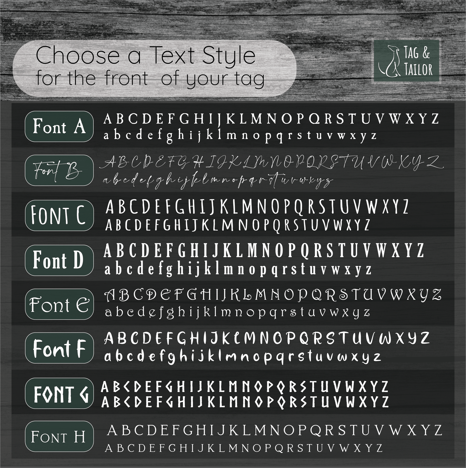- PRE-NAMED - Front of tag is sold as seen and cannot be changed - Back details can be added.