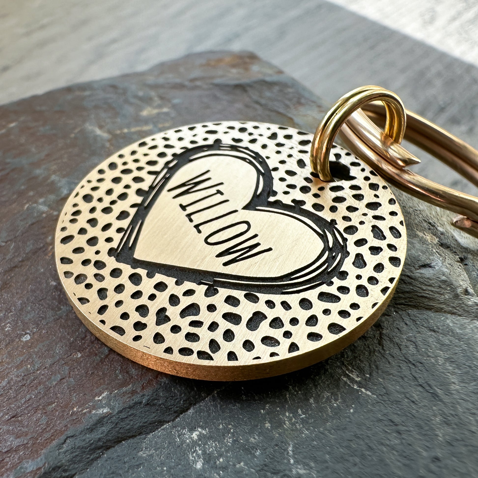 Tag and Tailor pet tags are designed and made in the UK using high quality, 2mm thick, solid brass and stainless steel. They are engraved using a fiber laser, then sanded and finished by hand.
