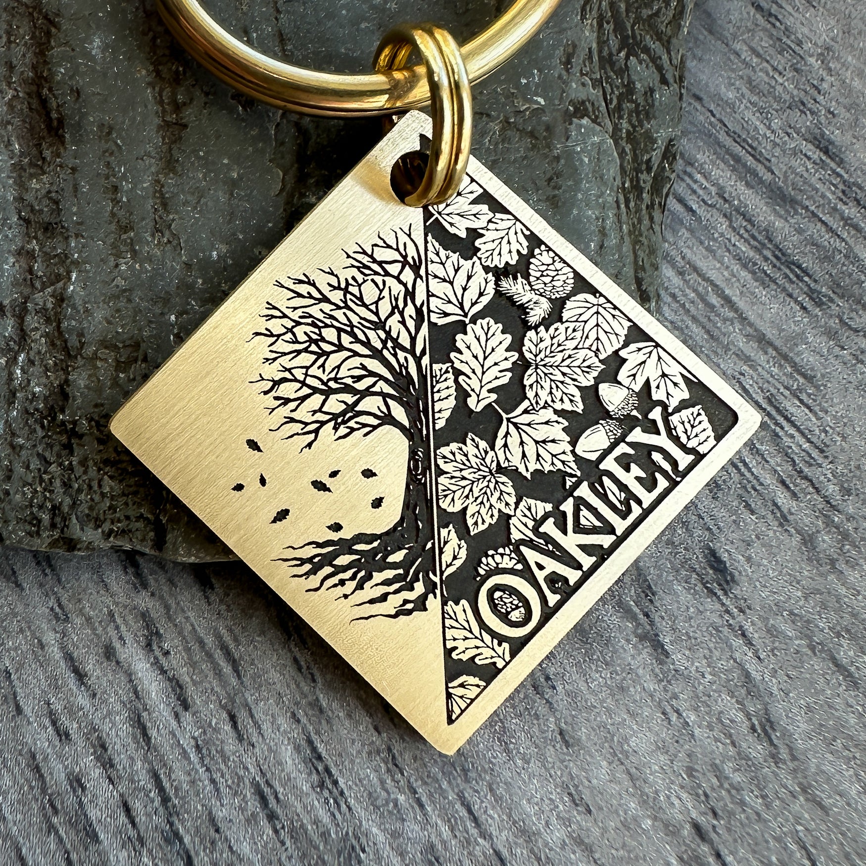 Tag and Tailor pet tags are designed and made in the UK using high quality, 2mm thick, solid brass and stainless steel. They are engraved using a fiber laser, then sanded and finished by hand.