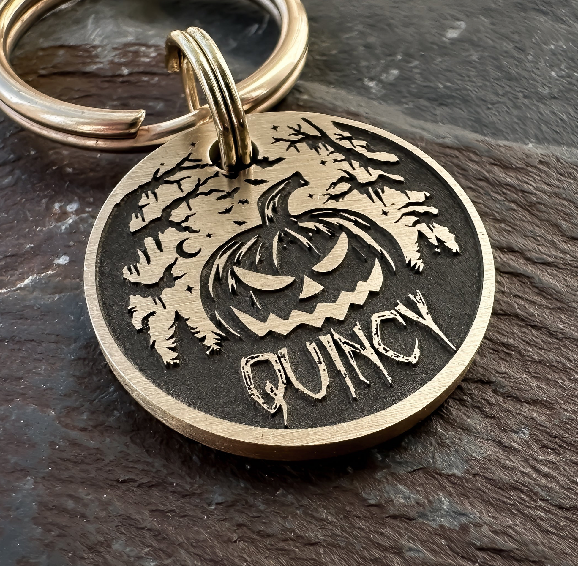 Tag and Tailor pet tags are designed and made in the UK using high quality, 2mm thick, solid brass and stainless steel. They are engraved using a fiber laser, then sanded and finished by hand.
