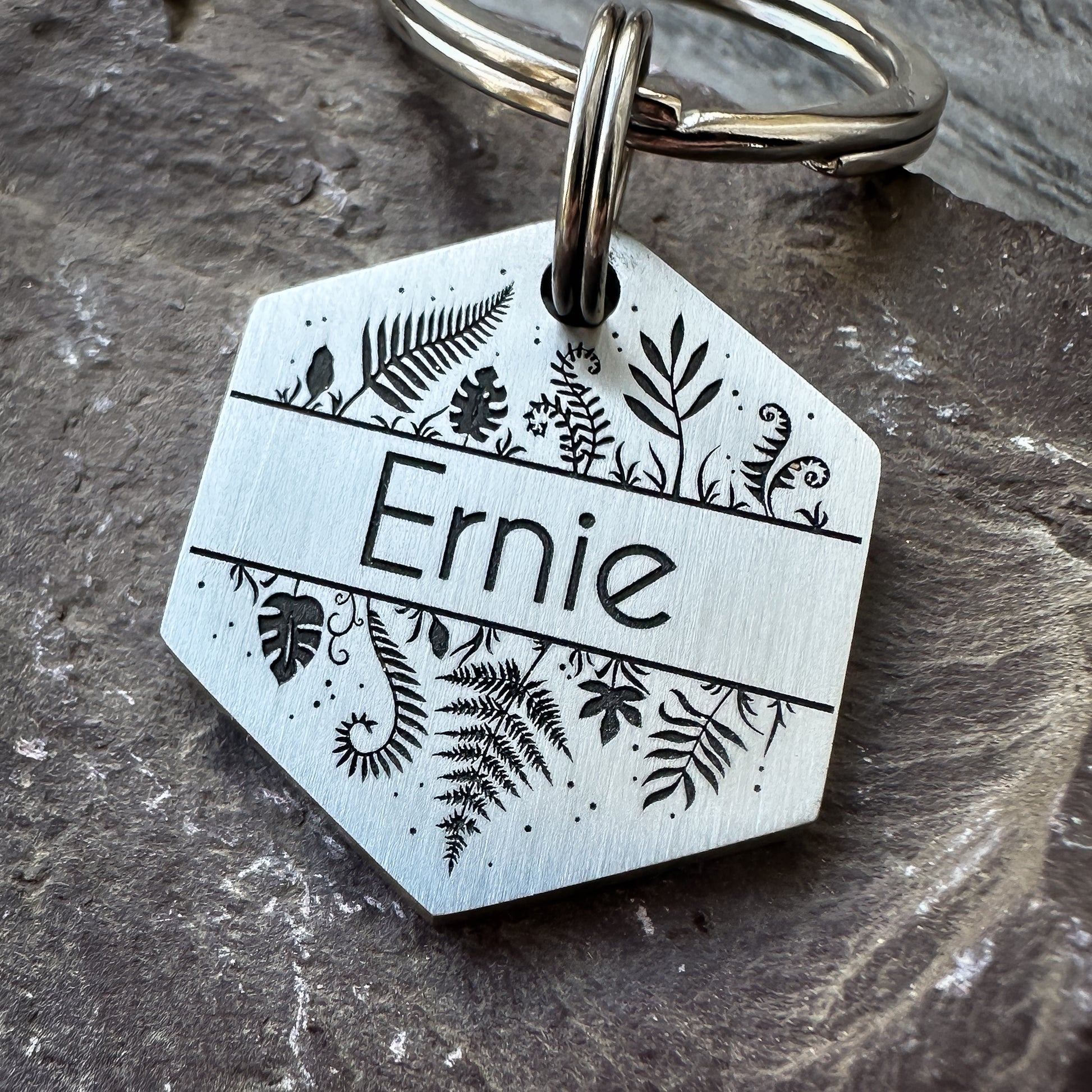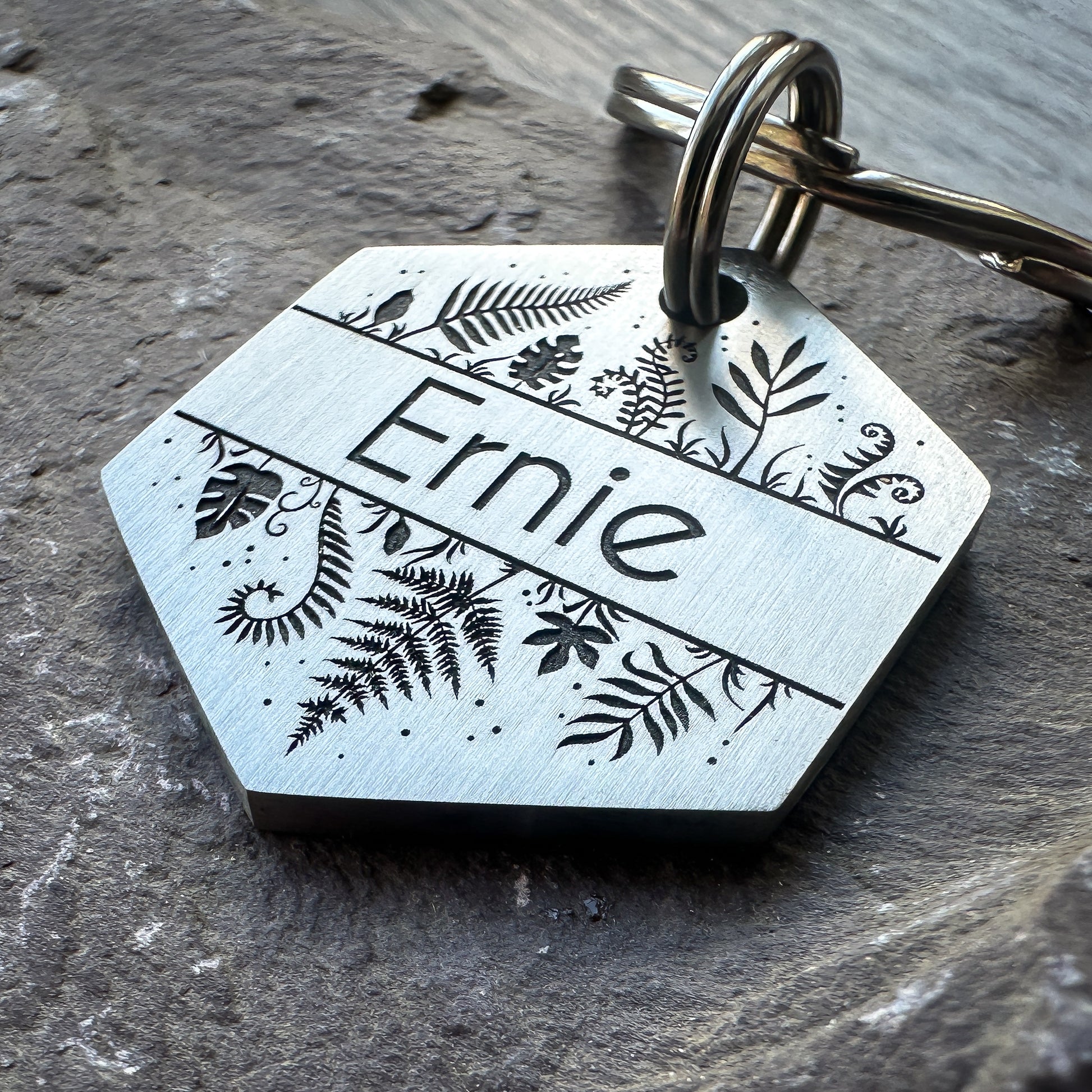Tag and Tailor pet tags are designed and made in the UK using high quality, 2mm thick, solid brass and stainless steel. They are engraved using a fiber laser, then sanded and finished by hand.