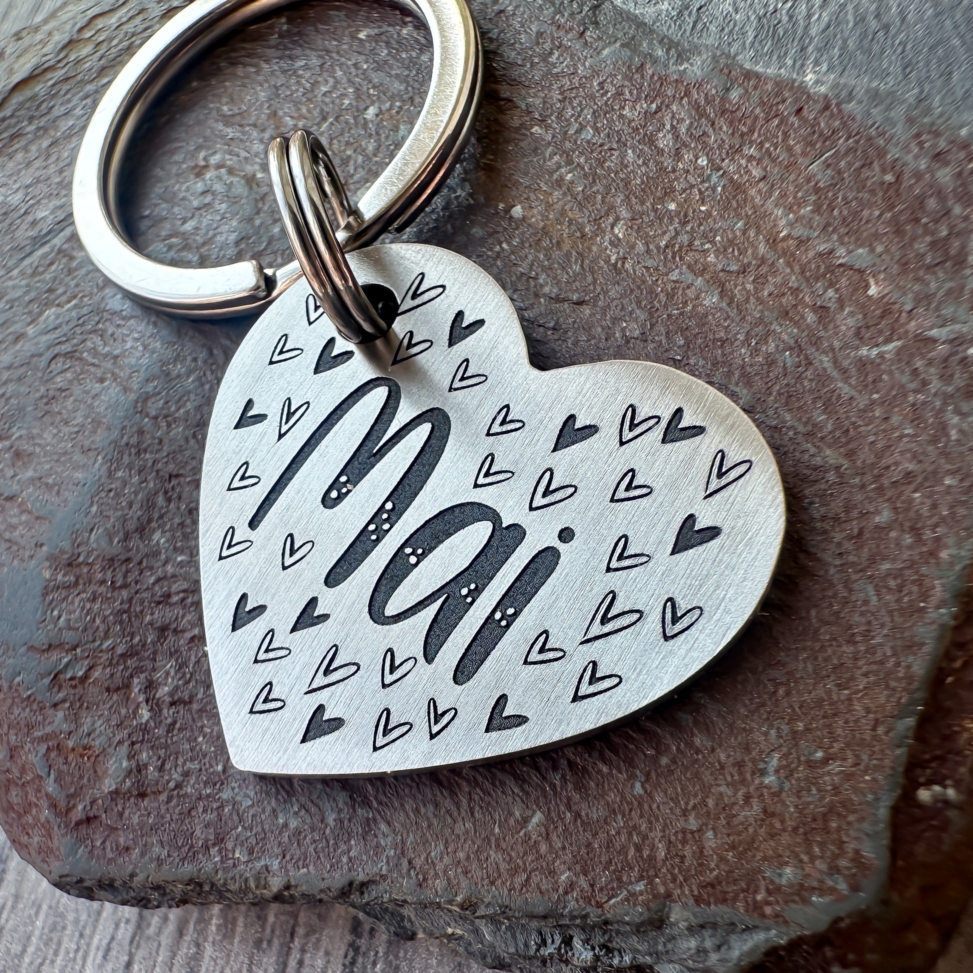 Tag and Tailor pet tags are designed and made in the UK using high quality, 2mm thick, solid brass and stainless steel. They are engraved using a fiber laser, then sanded and finished by hand.