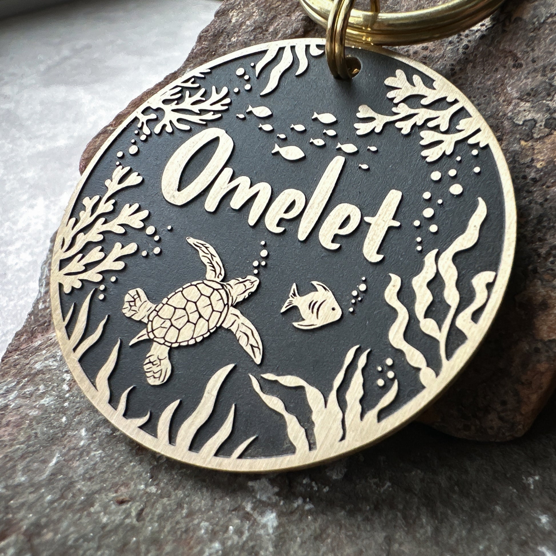 Tag and Tailor pet tags are designed and made in the UK using high quality, 2mm thick, solid brass and stainless steel. They are engraved using a fiber laser, then sanded and finished by hand.