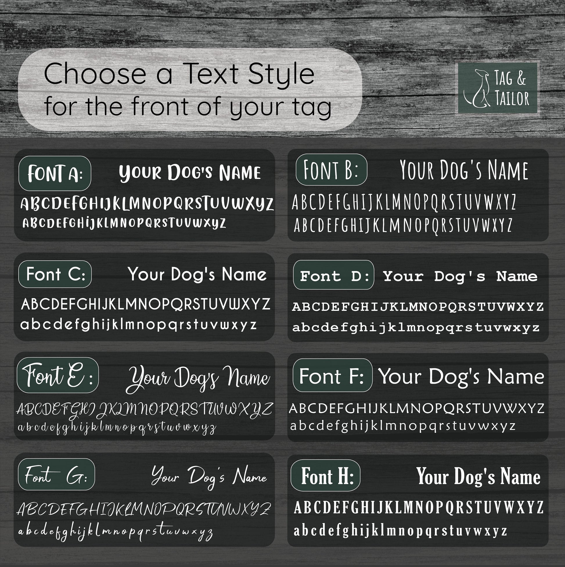Please note that designs and text positioning may vary depending on which shape and size tag you choose.