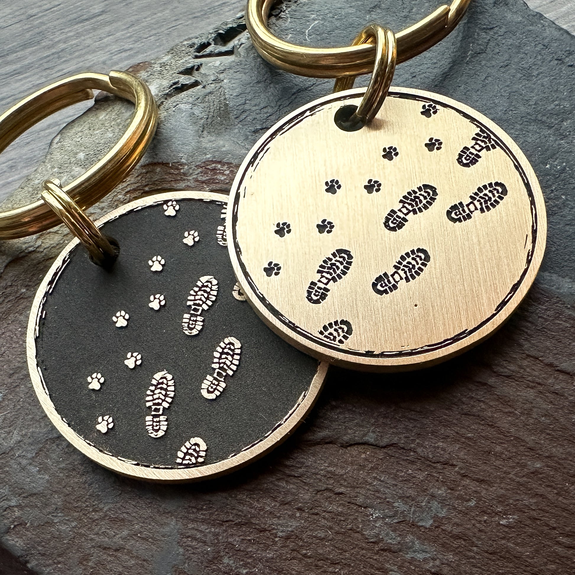 Tag and Tailor pet tags are designed and made in the UK using high quality, 2mm thick, solid brass and stainless steel. They are engraved using a fiber laser, then sanded and finished by hand.